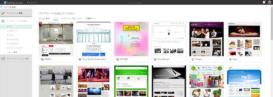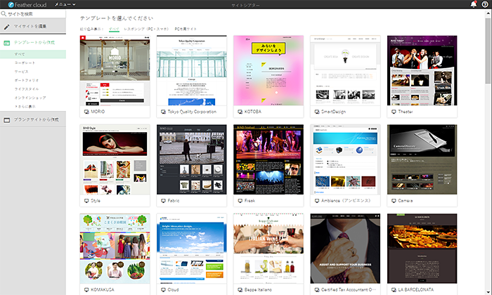 Feather cloudにログインすると、テンプレートを選ぶ画面が表示されます。